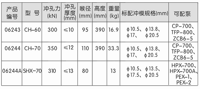 • 用于銅鋁排及低碳鋼材沖孔,需另配購手動(dòng)泵或電動(dòng)泵。