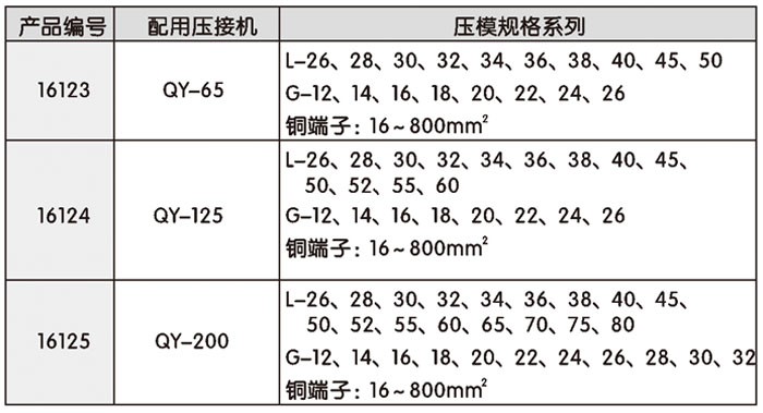• 壓模規格指鋁(L)或鋼(G)壓接管的外徑或銅導線(xiàn)的截面積;